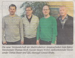 v. l. n. R. Vorstand Thomas Stiefl (DL6RCG), Kassier Jürgen Wöhrl (DD1ND), Stellv. Vorstand Tobias Bauer (DF1NIF), QSL-Manager Gerald Hruby (DL8RBS)
